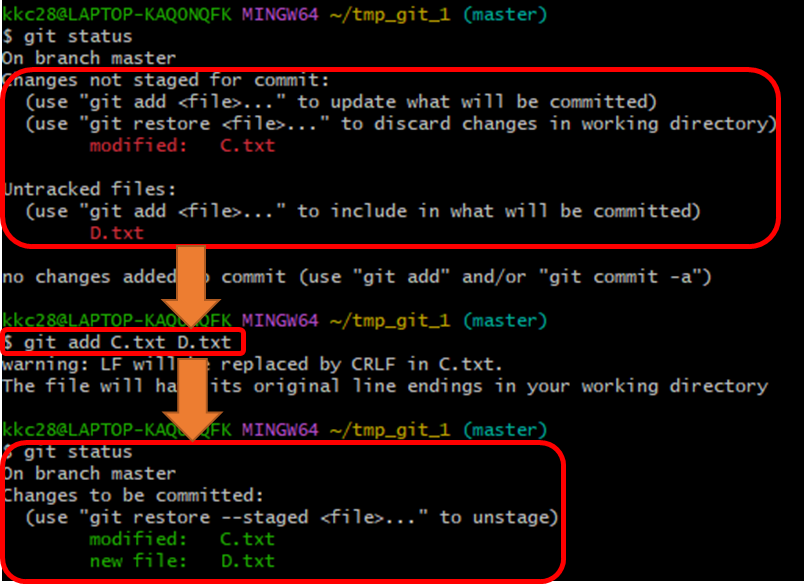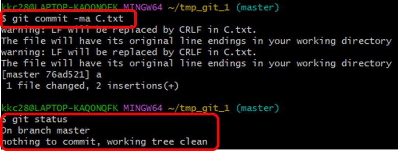 (git commit -ma C.txt에서 -a 옵션은 git add을 commit 명령어에서 바로 사용하겠다는 옵션입니다. )