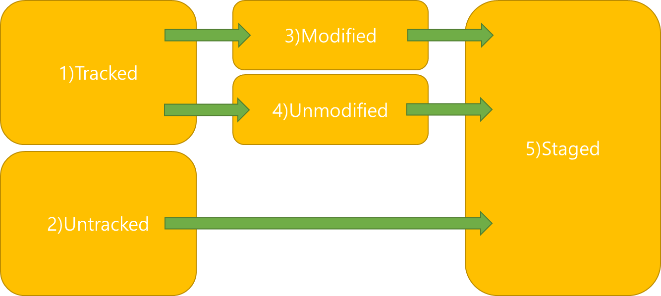 이러한 내용을 파악하기 위해 git에서는 파일의 상태를 5가지로 구분하여 정의합니다.